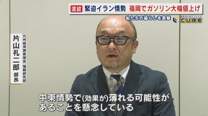 『九州経済調査協会』の片山礼二郎・部長は「九州の場合は大都市圏(首都圏・近畿圏)と比べて車社会。ガソリンの支出額も大都市圏に比べて約1.6倍。暫定税率が軽減されて、政策効果が出て来るというタイミングだった。中東情勢で効果が薄れる可能性があること」とガソリン価格上昇による家計や地域経済への影響を懸念する。