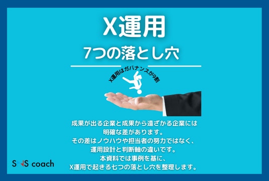 今回公開した資料では、企業のX運用で起きやすい問題を「7つの落とし穴」として整理しています。例えば、
