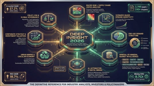 マクロ動向・クロス分析・リスクスコア分析、需要構造・エンドユース産業、エコシステム・連携、先端技術・イノベーション(AI・自動化・デジタル採掘)、鉱種別市場分析、企業戦略・投資分析、都市鉱山・リサイクル、政策・規制・国際枠組み