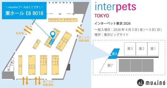 muninoは、2026年4月2日から東京ビッグサイトで開催される日本最大級のペットイベント「第15回インターペット 東京」に出展します。muninoのブースでは、価格や機能性にとどまらない多様な選択肢となり得る新製品を初お披露目するほか、一部の新商品企画にお力添えいただいたご縁から、life.with.dog デザイナーの柏友美さんによるブラッシングコーナーを設け、実際に弊社商品を体験いただけます。