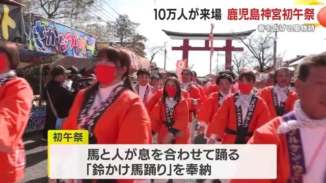 霧島市の鹿児島神宮に馬の首にかけられた鈴の音と威勢の良いかけ声が響き渡った。470年以上の歴史を誇る初午祭が3月8日に開催され、12年に一度の午年での特別な祭典に約10万人の見物客が詰めかけた。