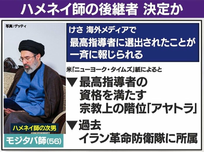 そして、9日朝、海外メディアで、ハメネイ師の次男・モジタバ師が最高指導者に選出されたことが一斉に報じられました。