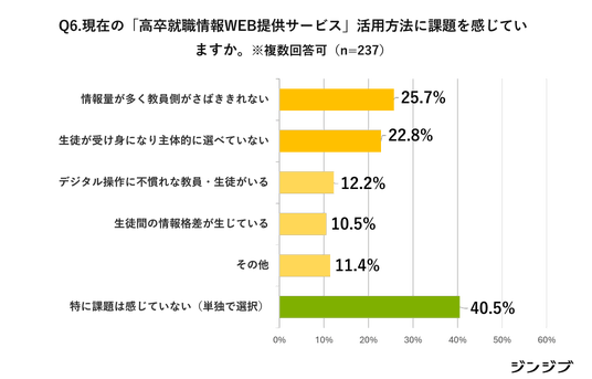 6.現在の「高卒就職情報WEB提供サービス」活用方法に課題を感じていますか。(複数回答可)