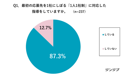 すると87.3%の教員が1人1社制にそって指導していると回答が得られました。