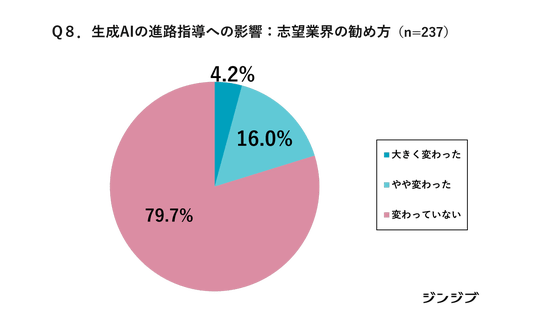 変わっていない(79.7%):「地元企業とのつながりを重視するとAIでの情報収集に限界がある」「生徒本人との希望や特性に合わせたマッチングを考えているため」