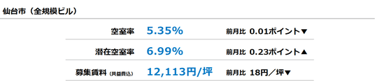 仙台市 全規模ビル 募集賃料&募集面積