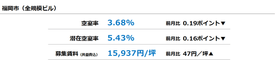 空室率 5ヵ月連続で低下 「天神」は0.8ポイントの大幅な低下