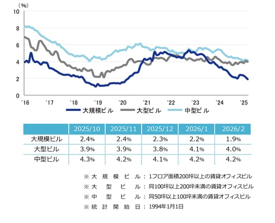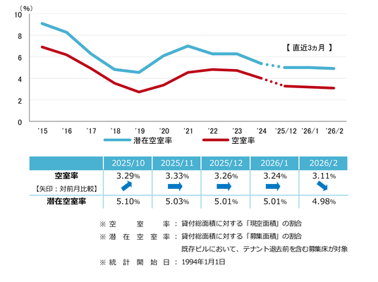 空室率 前月から小幅な低下 「大規模」は2021年2月以来の1%台