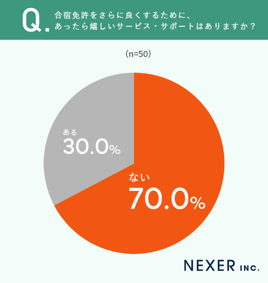 最後に、合宿免許をさらに良くするために、あったら嬉しいサービス・サポートはあるか聞いてみました。