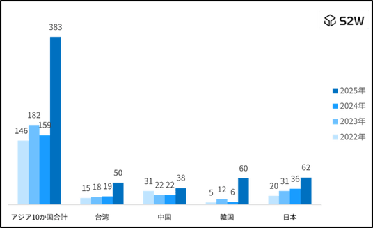 ※分析対象期間:2022-2025年、2025年は1月~10月。アジア10か国は2024年GDPランキング基準で選定。ソース:S2W QUAXAR