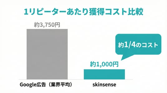 skinsenseでリピーターを獲得するコストと、Google広告で同等のリピーターを獲得するコストを比較した結果は以下の通りです。