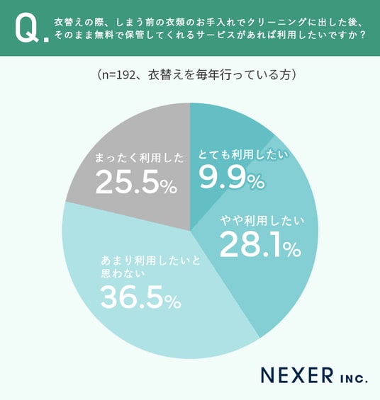 続いて、衣替えを行っている方に、クリーニング後にそのまま無料で保管してくれるサービスがあれば利用したいか聞いてみました。