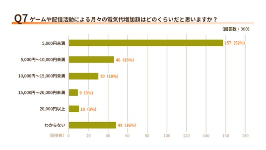 Q7.ゲームや配信活動による月々の電気代増加額はどのくらいだと思いますか?