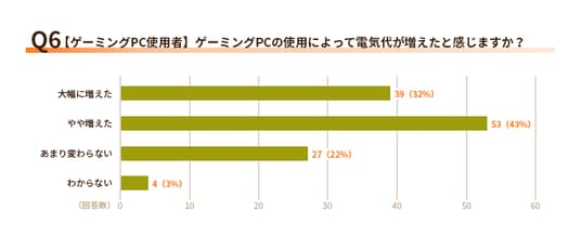 Q6.【ゲーミングPC使用者】ゲーミングPCの使用によって電気代が増えたと感じますか?