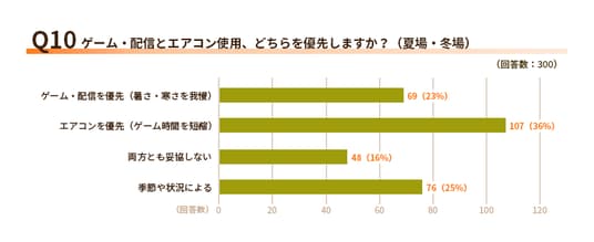 Q10.ゲーム・配信とエアコン使用、どちらを優先しますか?(夏場・冬場)