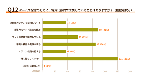 Q12.ゲームや配信のために、電気代節約で工夫していることはありますか?(複数選択可)