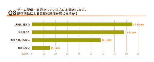 Q8.ゲーム配信・実況をしている方にお聞きします。配信活動による電気代増加を感じますか?