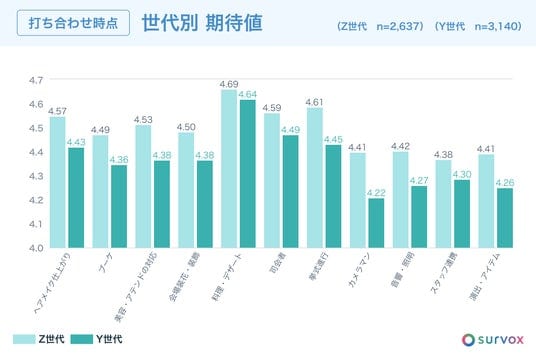 Z世代の特徴として、「打合せ時点での期待値平均」は、Y世代(4.38)よりもZ世代(4.51)の方が高い傾向があります。SNSなどで情報収集を行い、憧れを持って来館するため、期待値が高い状態からスタートしていると考えられます。