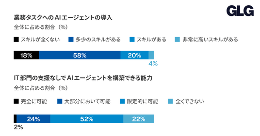IT部門の支援なしでAIエージェントを構築できるスキルを持つ非技術部門は、わずか26%にとどまりました。