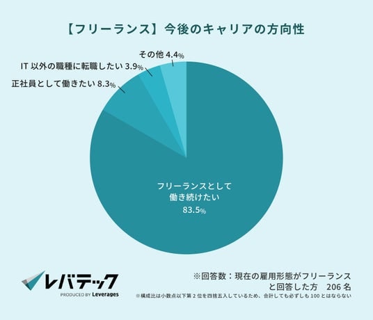 - 現役フリーランスの8割以上が「今後もフリーランスとして働き続けたい」と回答