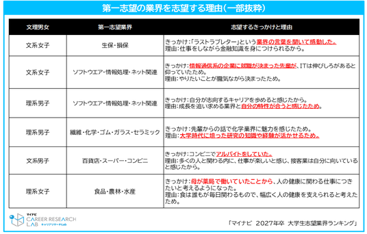 「マイナビ 2027年卒 大学生志望業界ランキング」