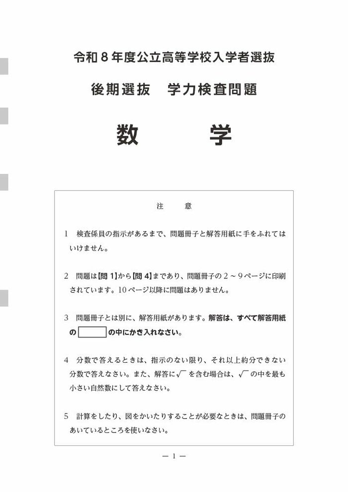 県教委が発表した数学の「各問のねらい」は次の通り。