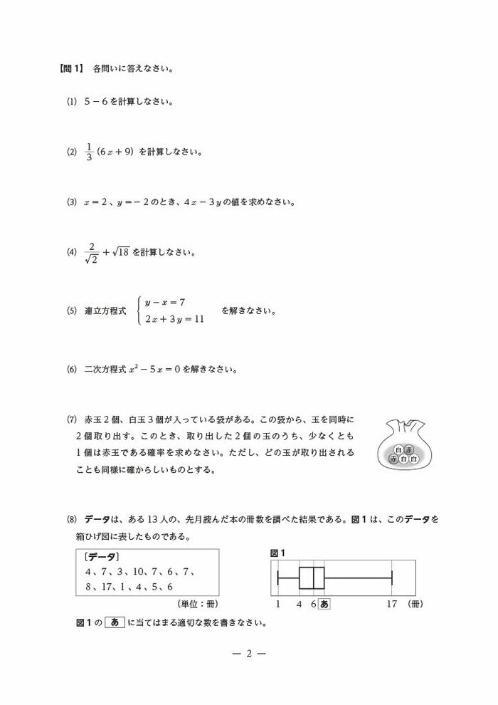 1 数と式、図形、関数、データの活用の基礎的・基本的な知識及び技能の習得の状況をみようとした。