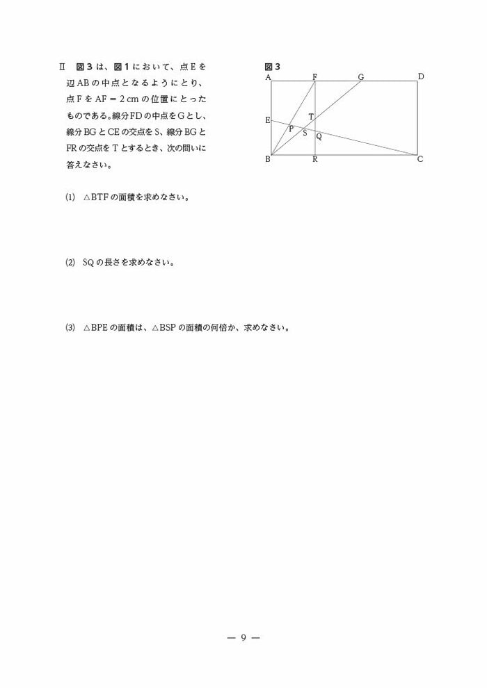 3 家から図書館への移動の様子及び長方形の辺上を動く点によって作られる三角形の面積について、表、式、グラフを用いて事象を数学的に表現し、処理する力を総合的にみようとした。