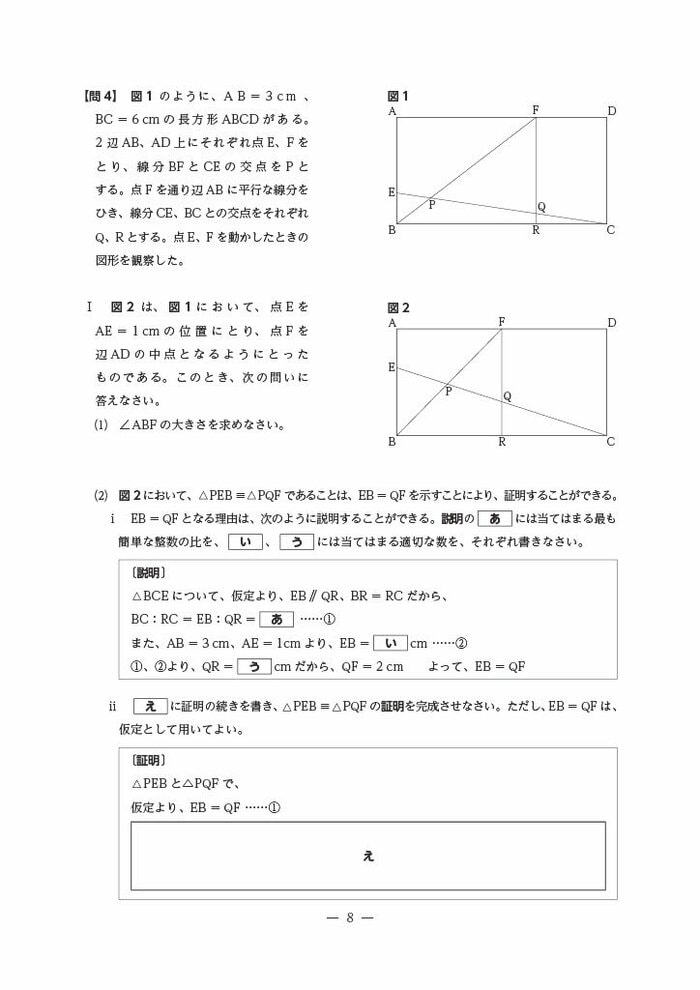4 長方形の内部にできる図形について、図形の基本的な性質を使って論理的に考察して数学的に表現し、処理する力を総合的にみようとした。