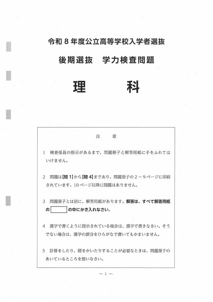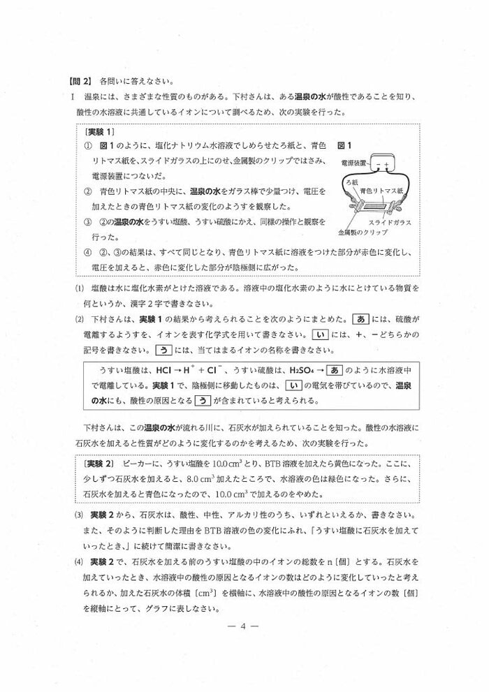 県教委が発表した理科の「各問のねらい」は次の通り。