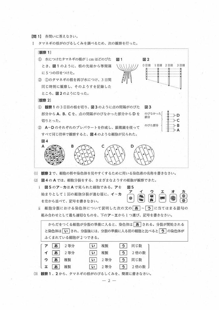 1 細胞分裂の観察とデンプンの分解に関する実験から、生物や生物現象について、基礎的・基本的な内容の習得の状況と科学的に探究する力を総合的にみようとした。