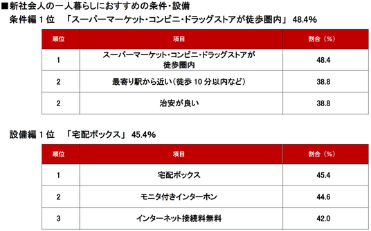 <不動産のプロに聞いた!「新社会人の一人暮らしにおすすめの条件・設備」ランキング調査結果>