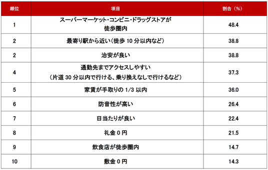 ~条件編1位「スーパーマーケット・コンビニ・ドラッグストアが徒歩圏内」48.4%~