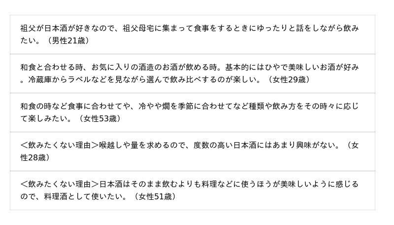 ☆日本酒を飲みたいシーン・飲み方など/日本酒を飲みたくない理由(全5,047件)