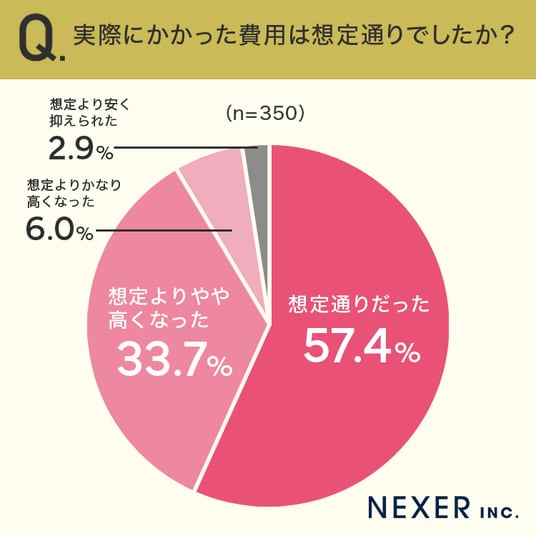 続いて、実際にかかった費用が想定通りだったかどうかを聞いてみました。