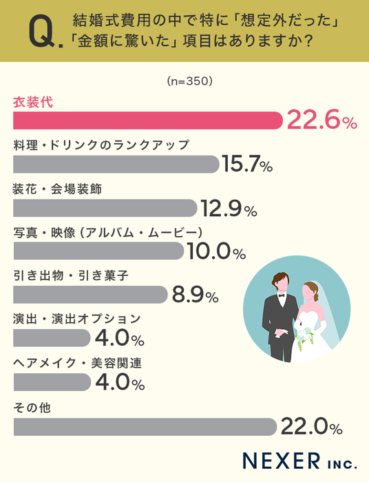 結婚式費用の中で特に「想定外だった」「金額に驚いた」項目について聞いてみました。