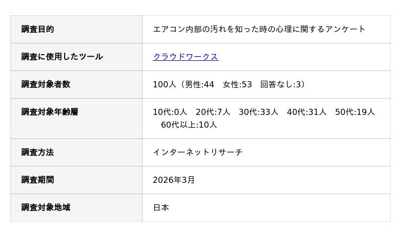エアコン内部の汚れを知った時の心理に関するアンケート調査の概要