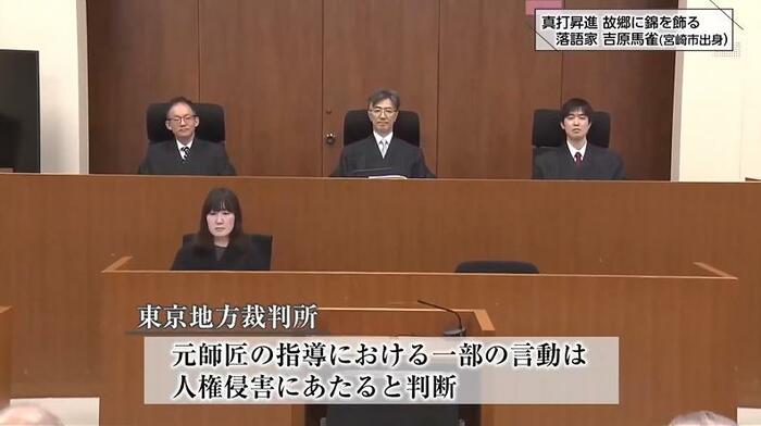 その後、馬雀は元師匠の行き過ぎた指導が人権侵害に当たるとし、東京地方裁判所に提訴。東京地裁は「元師匠の指導における一部の言動は人権侵害にあたる」と判決を言い渡した。