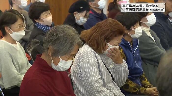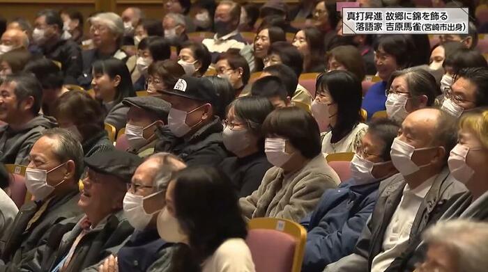 延岡市出身の桂銀治、宮崎市出身の立川らく兵、吉原朝馬師匠などが演目を披露し、会場は笑いにつつまれた。
