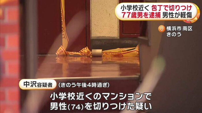 神奈川・横浜市の小学校近くのマンションで、77歳の男が突然包丁で男性を切りつけた疑いで現行犯で逮捕された。
