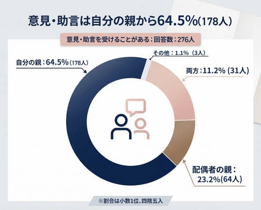 【結果2】意見・助言は「自分の親」からが最多――64.5%(178人)