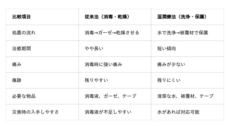 【エビデンス】日本皮膚科学会や日本創傷外科学会のガイドラインでは、傷の治療において湿潤環境を維持することの重要性が示されています。また、過去の震災における医療支援の報告書では、避難所での皮膚疾患の増加が繰り返し指摘されており、事前の備えと知識の普及が課題とされています。