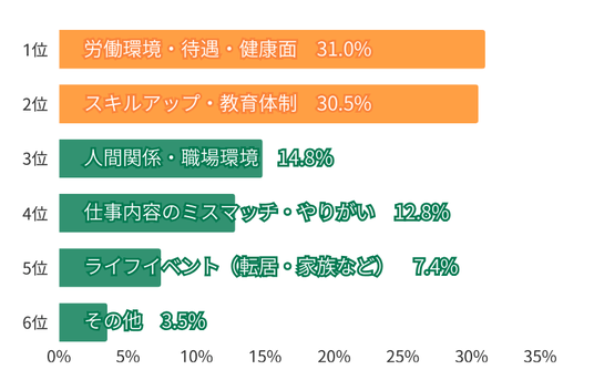 ・「人間関係」「仕事内容のミスマッチ」という回答も。働き方とキャリアの再設計を目的とした転職が増加。