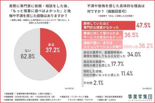専門家選びに後悔を感じた経営者は、具体的にどのような点に不満を持ったのでしょう。
