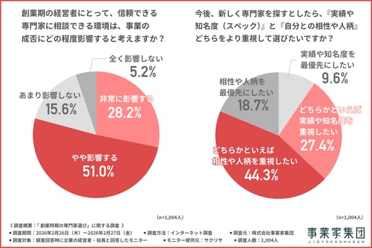 約8割が「信頼できる専門家の存在は事業の成否に影響する」と回答!
