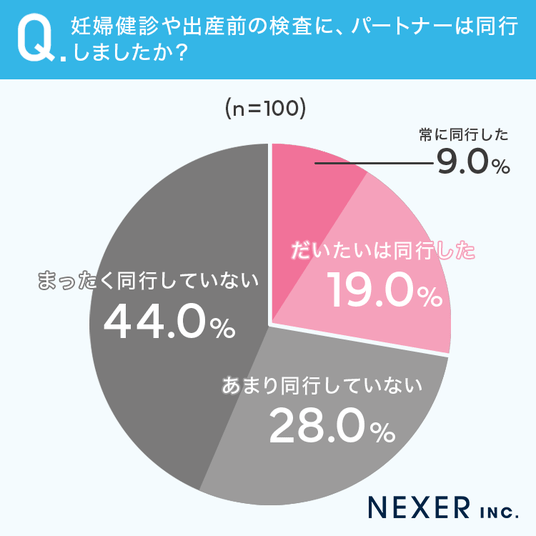 続いて、妊婦健診や出産前の検査にパートナーが同行したかを聞いてみました。