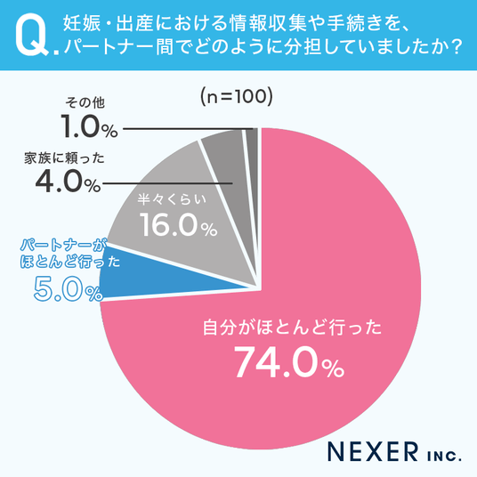 ■74.0%が妊娠・出産における情報収集や手続きを「自分がほとんど行った」と回答