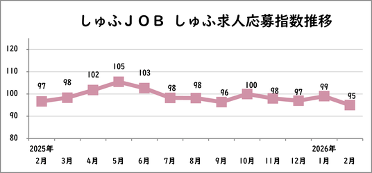 応募指数は前月比-4、前年同月比-2の95。
