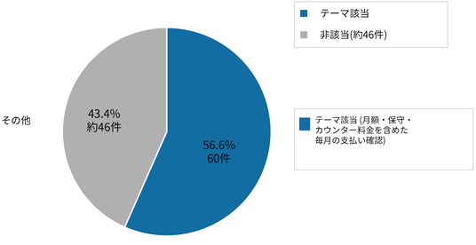 分析の結果、「月額」に関する言及があった相談は60件、構成比は56.6%でした。半数を超える相談で、月額費用が価格確認の主要な論点となっていました。