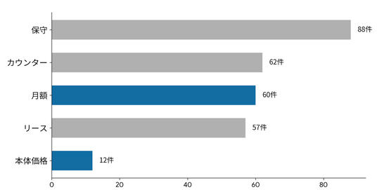 分析の結果、月額の話が出た相談は60件、構成比は56.6%で、相談の中心が本体価格ではなく、月額費用やその内訳にあることが分かりました。